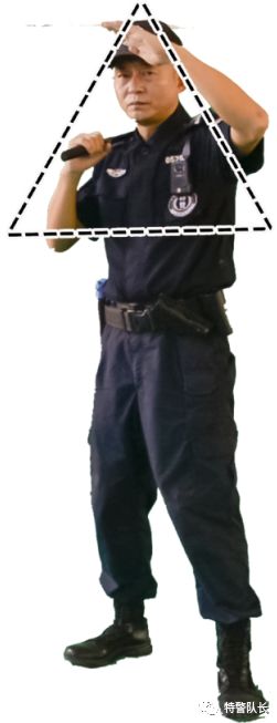 紧张状况下的警械戒备,三角形防护面积有效保护头、面、颈、胸等重要部位。不能遮挡执法记录仪。